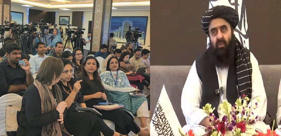 अफगान विदेशमंत्री की प्रेस-कॉन्फ्रेंस, महिला पत्रकार पहली लाइन में बैठीं, मुत्तकी बोले- पिछली बार समय कम था