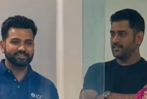 भारत के वर्ल्ड कप विजेता कप्तान एमएस धोनी और रोहित शर्मा मैच देखने वानखेड़े स्टेडियम पहुंचे। भारतीय बल्लेबाजी के 19वें ओवर में तिलक वर्मा ने आर्चर की गेंद पर छक्का लगाया। इस दौरान धोनी और रोहित ने ताली बजाकर शॉट को सराहा।