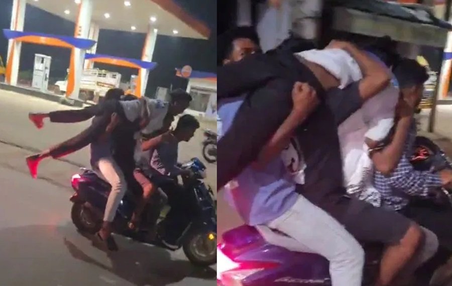 बीजापुर : एक स्कूटी पर बैठे 5 युवक, हाईवे पर स्टंटबाजी..Video सीट पर 4 लड़के, 5वें को कंधे पर लिटाकर दौड़ाई गाड़ी
