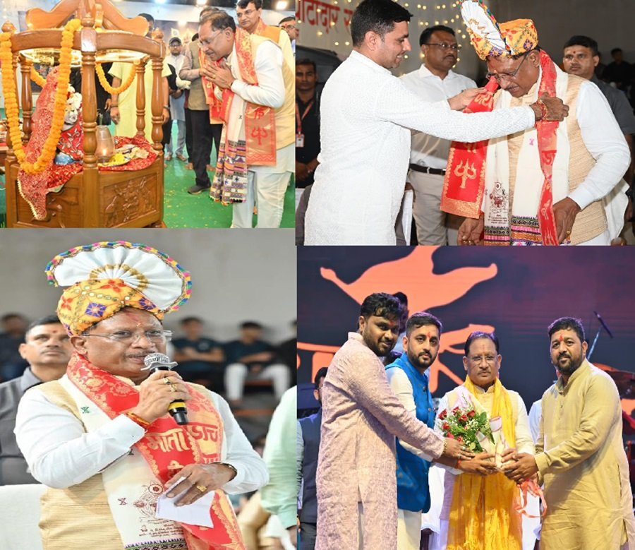 छत्तीसगढ़ : मुख्यमंत्री विष्णु देव साय नवरात्रि के पावन पर्व पर विगत रात्रि रायपुर स्थित विभिन्न गरबा समारोहों में शामिल हुए। उन्होंने मातारानी का दर्शन कर प्रदेश की सुख, समृद्धि एवं खुशहाली की कामना की। इस अवसर पर रायपुर शहर गरबा के रंग में सराबोर दिखाई दिया और हर तरफ़ उत्सव का उल्लास वातावरण में व्याप्त था। मुख्यमंत्री साय भानपुरी स्थित श्री कच्छ कड़वा पाटीदार समाज, आशीर्वाद भवन में श्री गुजराती लोहाणा महाजन समाज द्वारा आयोजित “झणकारो 2025”, इनडोर स्टेडियम में “रंगीलो रास 2025” तथा ओमाया पार्क में “रास गरबा उत्सव” में सम्मिलित हुए। इन आयोजनों में समाजजनों ने मुख्यमंत्री का पारंपरिक कच्छ पगड़ी पहनाकर और तिलक लगाकर आत्मीय स्वागत किया। गरबा की धुनों और रंगारंग माहौल में मुख्यमंत्री की उपस्थिति ने जनसमूह में उत्साह और ऊर्जा का संचार किया।