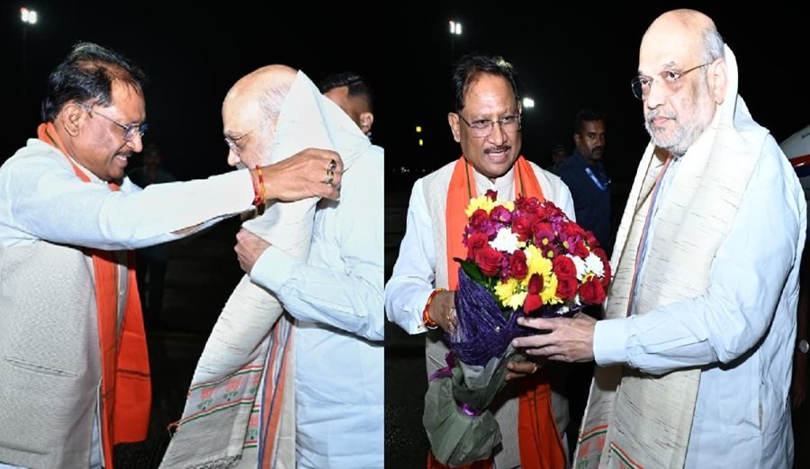 छत्तीसगढ़ : केंद्रीय गृह मंत्री अमित शाह कल रात छत्तीसगढ़ के दो दिवसीय प्रवास पर राजधानी रायपुर पहुंचे। मुख्यमंत्री विष्णु देव साय ने स्वामी विवेकानंद विमानतल पर पुष्पगुच्छ भेंट कर उनका आत्मीय स्वागत किया।