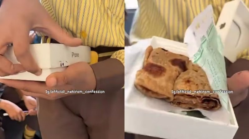 A student walked into class carrying a sleek Apple iPhone box but when his teacher asked what was inside, she got a surprise.