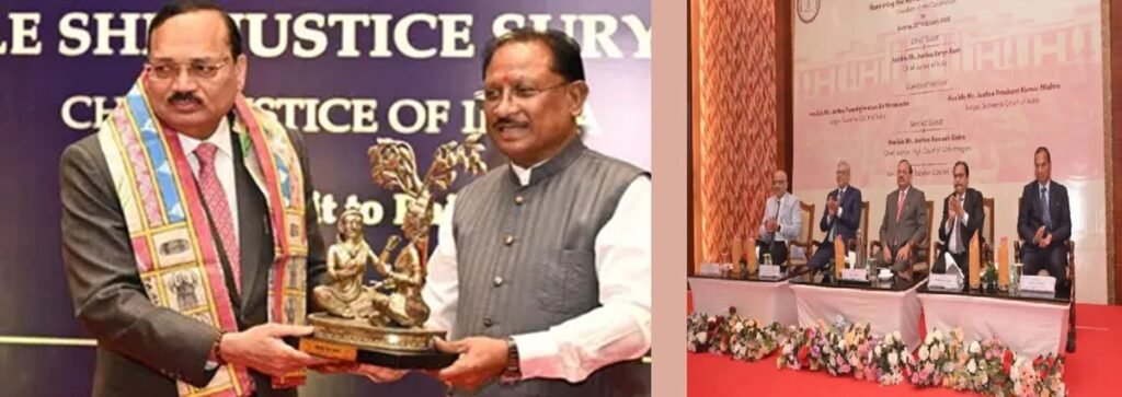 चीफ जस्टीस ऑफ इंडिया ने छत्तीसगढ़ के इतिहास का उल्लेख करते हुए कहा कि यह राज्य भारत की विविधता का लघु रूप है। “छत्तीसगढ़” नाम का पारंपरिक अर्थ “36 किले की भूमि” माना जाता है। ये किले केवल रक्षा संरचनाएं नहीं थे, बल्कि शासन प्रशासन और सामुदायिक जीवन के केंद्र थे। वे केवल सैन्य शक्ति से नहीं बल्कि जिन मूल्यों की रक्षा करते थे उनसे सुदृढ़ बने रहे। संवैधानिक न्यायालयों को लोकतंत्र के आधुनिक किलों के रूप में देखा जा सकता है। वे भूभाग की नहीं, अधिकारों की रक्षा करते हैं, वे सीमाओं की नहीं, बल्कि सत्ता की संवैधानिक मर्यादाओं की रक्षा करते हैं। छत्तीसगढ़ उच्च न्यायालय के समस्त न्यायमूर्तिगण, तेलंगाना उच्च न्यायालय के न्यायमूर्ति पी. सैम कोशी, विधि विभाग के प्रमुख सचिव, रजिस्ट्रार जनरल, रजिस्ट्री के अधिकारीगण, रायपुर जिला के न्यायाधीशगण एवं उच्च न्यायालय के कर्मचारीगण की उपस्थिति रही।