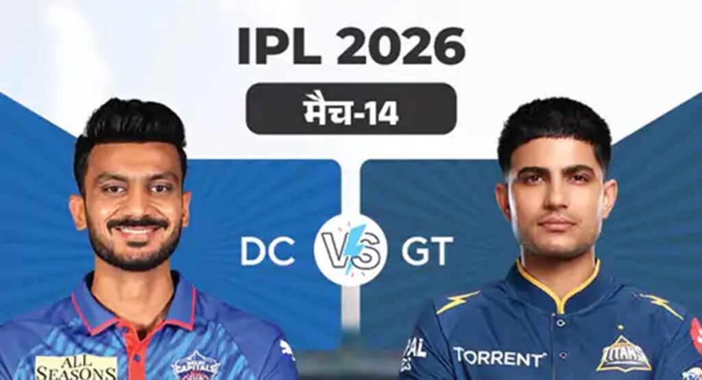 IPL 2026 के 14वें मैच में आज दिल्ली कैपिटल्स का सामना गुजरात टाइटंस से होगा। मुकाबला अरुण जेटली स्टेडियम में शाम 7:30 बजे से खेला जाएगा। टॉस शाम 7:00 बजे होगा। DC और GT का इस सीजन पहला मैच होगा। दोनों टीमों का इस सीजन तीसरा मैच होगा। दिल्ली दोनों मैच जीतकर 4 पॉइंट्स के साथ पॉइंट्स टेबल में चौथे नंबर पर है। गुजरात अपने दोनों शुरुआती मुकाबले हारकर 9वें नंबर पर है। IPL इतिहास में दोनों टीमों के बीच 7 मुकाबले हुए हैं। DC ने 3 और GT ने 4 मैच जीते हैं। IPL 2025 में दोनों के बीच 2 मुकाबले हुए थे, जिन्हें GT ने जीता था।