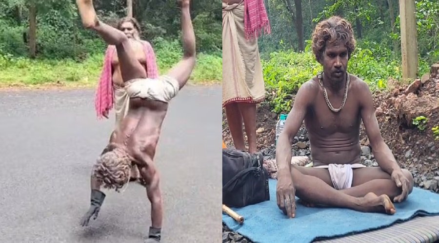 धर्मराज पुरी महाराज पहुंचे छत्तीसगढ़, हाथों के बल उल्टे चलकर 3500km की कठिन यात्रा, 4 साल में पूरी होगी नर्मदा परिक्रमा