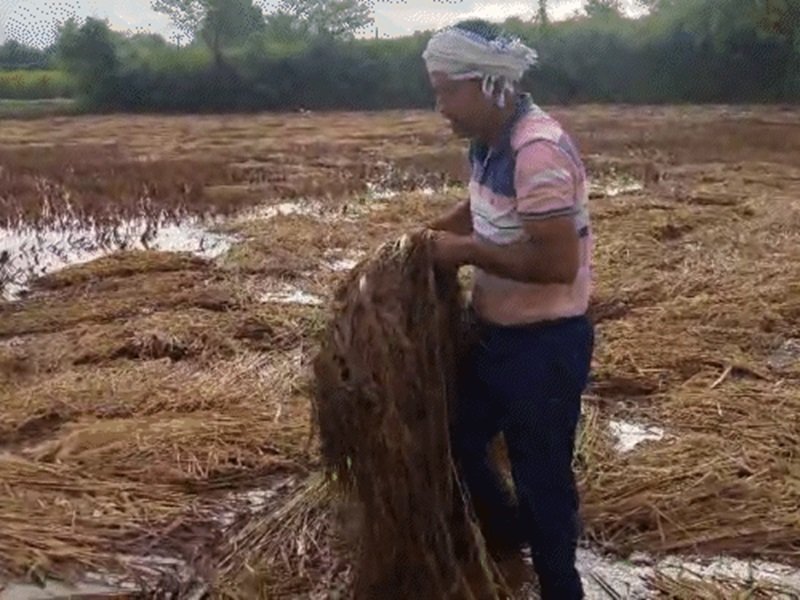 कवर्धा : बारिश से कटी फसल बर्बाद देख गिर पड़ा किसान, खेतों में भरा पानी, मोन्था का असर