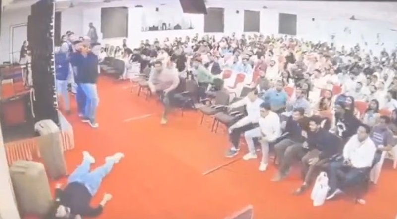 गुजरात के सूरत में कॉलेज इवेंट के दौरान स्पीच देते वक्त 24 साल की युवती अचानक से गिर पड़ी। उसे तुरंत ही पास के अस्पताल ले जाया गया, जहां डॉक्टरों ने उसे मृत घोषित कर दिया। डॉक्टरों ने हार्टअटैक की आशंका जताई। अहमदाबाद में रहने वाली IT प्रोफेशन जिलबेन ठक्कर सोमवार को सूरत के धारुकावाला कॉलेज में अपनी कंपनी के इवेंट में पहुंची थीं। घटना का जो वीडियो सामने आया है उसमें नजर आ रहा है कि सैकड़ों लोग एक हॉल में मौजूद हैं। जिलबेन कंपनी के बारे में उन्होंने बता रही हैं। अचानक से वो लड़खड़ाकर पीठ के बल जमीन पर गिरती हैं। लोग जिलबेन को संभालने दौड़ते हैं। उन्हें पास के अस्पताल ले जाते हैं। वहां जिलबेन को मृत घोषित कर दिया जाता है। पुलिस के मुताबिक कंपनी मौत की असली वजह पोस्ट मार्टम रिपोर्ट के बाद ही सामने आ सकेगी। मामला दर्ज कर लिया गया है।