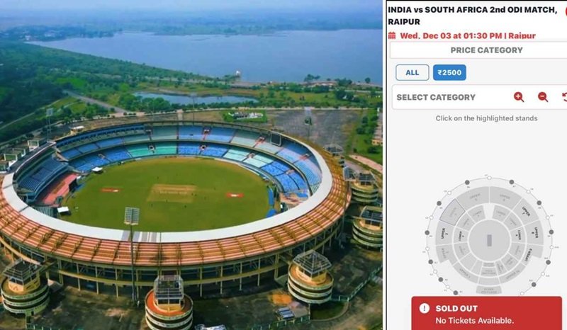 छत्तीसगढ़ की राजधानी रायपुर स्थित शहीद वीर नारायण सिंह इंटरनेशनल क्रिकेट स्टेडियम में 3 दिसंबर को भारत और दक्षिण अफ्रीका के बीच वन डे इंटरनेशनल मैच खेला जाना है। इस मैच के लिए टिकट बिक्री 22 नवंबर की शाम पांच बजे से आनलाइन शुरू हुई। हैरानी की बात यह है कि, बिक्री शुरू होने के मात्र 15 मिनट बाद ही टिकट बिक्री करने वाले वेबसाइट ने सोल्ड आउट दिखाना शुरू कर दिया। BCCI की ओर से बताया गया था कि, 22 नवंबर की शाम 5 बजे से टिकट बिक्री www. ticketgini.in पर होगी। लेकिन सवा पांच बजे ही, 15 मिनिट में पूरी टिकट सोल्ड आउट हो गई। सभी स्टैंड्स की टिकट 1500, 2500, 3000, 3500 सभी सोल्ड आउट बताने लगा।