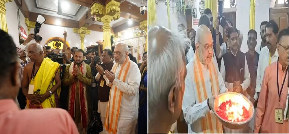 शाह ने जगदलपुर मे मां दंतेश्वरी मंदिर मे माईजी की पूजा अर्चना की।