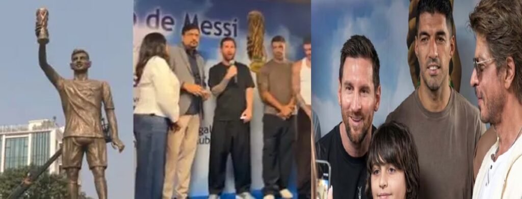 मेसी 14 साल बाद भारत पहुंचे, कोलकाता में अपने 70 फीट ऊंचे स्टेच्यू का उद्घाटन किया, शाहरुख से मिले, सौरव गांगुली से मिलेंगे