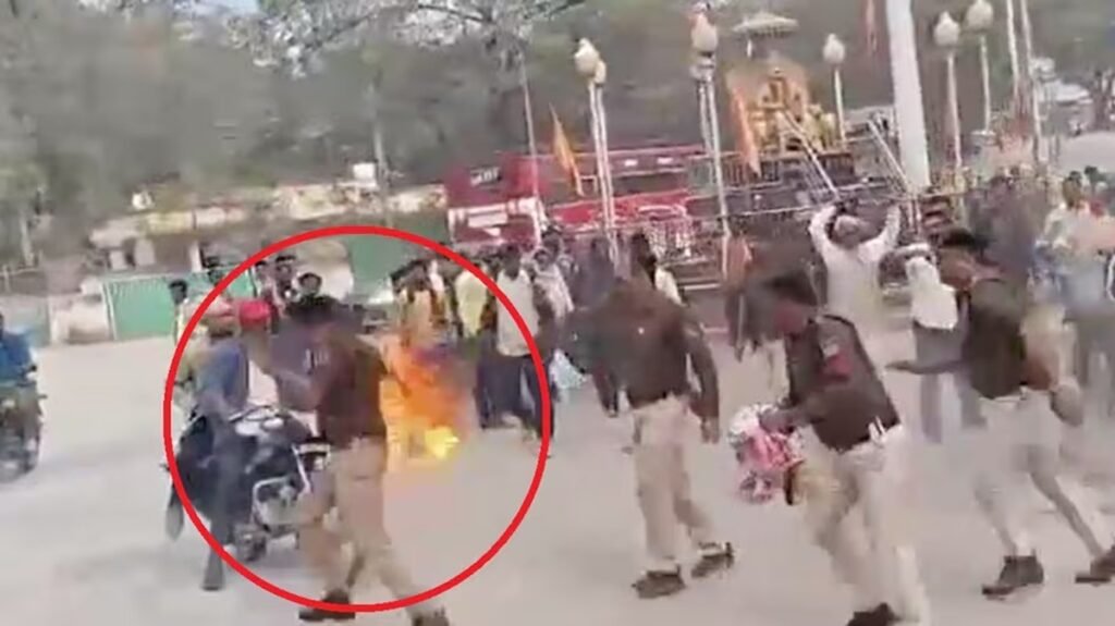 मैहर: कांग्रेस के प्रदर्शन में बवाल, आग की लपटों में घिरे ट्रैफिक पुलिस अधिकारी, पेट्रोल के छींटों से वर्दी में लगी आग