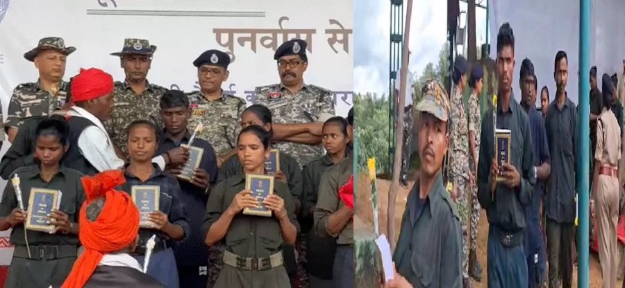 छत्तीसगढ़ के उत्तर बस्तर कांकेर में 21 नक्सलियों ने सरेंडर किया है। पुलिस ने सरेंडर्ड नक्सलियों को आज बुधवार 29 अक्टूबर को मीडिया के सामने पेश किया। कांकेर के मांझियों ने उन्हें संविधान की किताब भेंट कर मुख्यधारा में शामिल होने पर स्वागत किया। आत्मसमर्पण करने वाले नक्सलियों को बस्तर आईजी ने संविधान की प्रति सौंपकर मुख्यधारा में उनका स्वागत किया है. नक्सलवाद के खात्मे को लेकर जारी अभियान के बीच इस माह पुलिस ने अपनी रणनीति बदली है और एनकाउंटर की जगह समर्पण को प्राथमिकता देते हुए नक्सलियों को साफ संदेश दिया गया था कि वो यदि आत्मसमर्पण कर मुख्य धारा में लौटने को तैयार हैं तो उनका स्वागत किया जाएगा. वो ऐसा नहीं करेंगे तो उनसे फोर्स निपटने को तैयार बैठी है. जिसका असर भी देखने को मिला और इसी माह 208 नक्सलियों ने 109 हथियारों के साथ जगदलपुर में सरेंडर किया था.