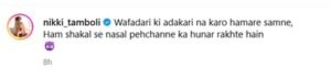 निक्की तंबोली ने धनश्री पर कसा तंज, कहा- वफादारी की अदाकारी मत करो…