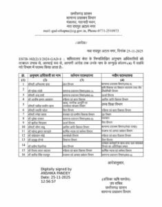 CG : सामान्य प्रशासन विभाग के 16 अफसरों का तबादला, प्रफुल्ल टोप्पो वित्त, स्नेहा यादव गृह विभाग की संभालेंगी जिम्मेदारी