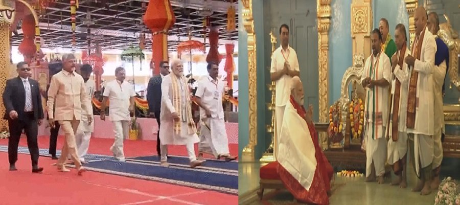 आंध्रप्रदेश में PM मोदी, सत्य साई बाबा मंदिर में पूजा की, सिक्का-डाक टिकट जारी किया