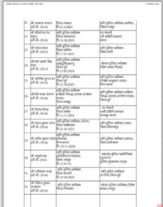 कोरिया जिले के एएसपी पंकज पटेल को सक्ती भेजा गया है. सक्ती के ASP हरीश कुमार यादव को बेमेतरा का एएसपी नियुक्त किया गया है. धमतरी के एएसपी मणिशंकर चंद्रा को दुर्ग (ग्रामीण) का एएसपी नियुक्त किया गया है. मधुलिका सिंह को बिलासपुर (ग्रामीण) का एएसपी बनाया गया है. जशपुर से एएसपी अनिल सोनी को रायगढ़ का एएसपी बनाया गया है. सरगुजा विशेष शाखा के एएसपी राकेश कुमार पाटनवार को जशपुर का एएसपी नियुक्त किया गया है. बस्तर के एएसपी योगेश कुमार देवांगन को सूरजपुर का एएसपी नियुक्त किया गया है.