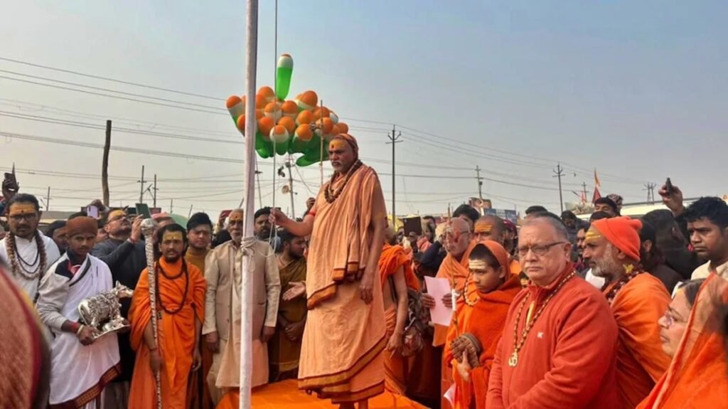 प्रयागराज माघ मेला विवाद: शिविर के बाहर विरोध में बैठे स्वामी अविमुक्तेश्वरानंद, प्रशासन से माफी की मांग, आज फहराया तिरंगा