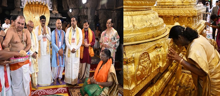 राष्ट्रपति द्रौपदी मुर्मू ने तिरुपति वेंकटेश्वर मंदिर में पूजा की, ध्वजस्तंभ पर भी प्रार्थना की