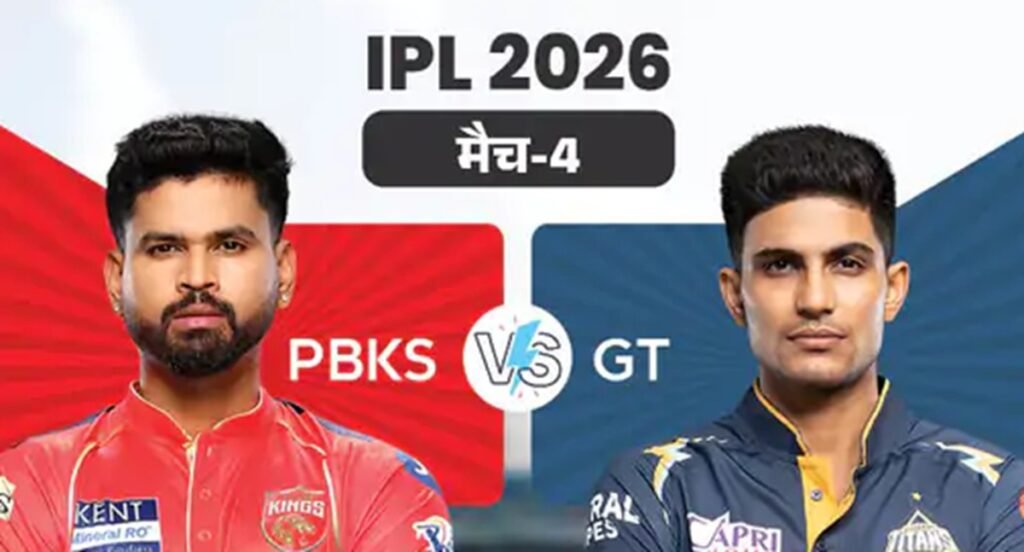 IPL का चौथा मुकाबला आज पंजाब किंग्स (PBKS) और गुजरात टाइटंस (GT) के बीच खेला जाएगा। मैच न्यू चंडीगढ़ के महाराजा यादवेंद्र सिंह स्टेडियम में शाम 7:30 बजे से शुरू होगा। जबकि टॉस शाम 7 बजे होगा। गुजरात टाइटंस का यह पांचवां सीजन होगा। टीम ने 2022 में अपने डेब्यू सीजन में ही खिताब जीता था, जबकि पिछले सीजन वह चौथे स्थान पर रही। वहीं पंजाब किंग्स को अब भी अपने पहले खिताब का इंतजार है। टीम पिछले सीजन रनर-अप रही थी। IPL में पंजाब किंग्स और गुजरात टाइटंस के बीच अब तक 6 मुकाबले हुए हैं, दोनों टीमों ने 3-3 मैच जीते हैं। IPL 2025 में दोनों की एक भिड़ंत में पंजाब ने गुजरात को 11 रन से हराया था। न्यू चंडीगढ़ में दोनों टीमें एक बार भिड़ीं, जिसमें गुजरात ने पंजाब को 3 विकेट से हराया।