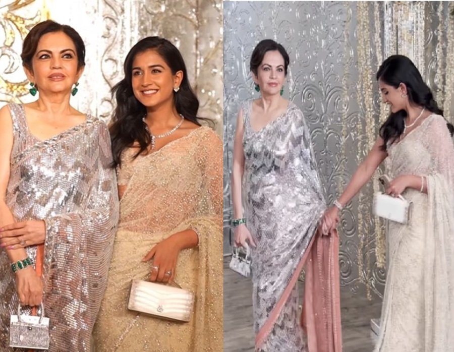 नीता अंबानी की बात करें तो उन्होंने मनीष मल्होत्रा की डिजाइन की गई सिग्नेचर सिल्वर सीक्विन साड़ी पहनी थी. साड़ी पर बारीक शेवरॉन डिटेलिंग थी, जो इसे चमकदार और पार्ट परफेक्ट बना रही थी. नीता अंबानी ने इस ट्रेडिशनल लुक में ग्लैमरस टच जोड़ने के लिए साड़ी को विदआउट स्लीव्स मैचिंग सीक्वेंस ब्लाउज के साथ पेयर किया.