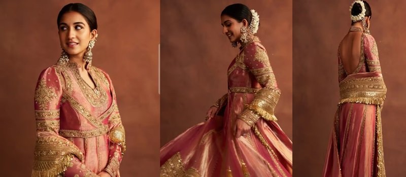 ये खूबसूरत सूट राधिका को किसी राजकुमारी जैसा लुक दे रहा था, राधिका ने अपने इस शाही आउटफिट के साथ सिंपल लेकिन स्टाइलिश गहने पहने, जिससे उनका पूरा लुक और भी ग्रेसफुल लग रहा था. राधिका ने अनारकली सूट में अंगरखा स्टाइल कुर्ता था, जिसमें टाई-अप डिटेल्स थी, स्पिलट बंदगला नेकलाइन और फुल स्लीव्स थी. राधिका के कुर्ते की कमर फिटेड थी, जो उनके आउटफिट की खूबसूरती को निखार रही थी.