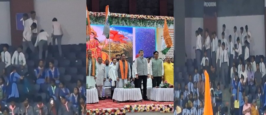 छत्तीसगढ़ : वंदे मातरम की 150वीं वर्षगांठ पर राजधानी रायपुर के इनडोर स्टेडियम में भव्य कार्यक्रम आयोजित किया गया. मंच पर नेता और मंत्री भाषण देते रहे, लेकिन दर्शक दीर्घा में बैठे नन्हें स्कूली बच्चे भूख और प्यास से बेहाल नज़र आए. मुख्यमंत्री के देर से पहुंचने के कारण बच्चों को घंटों इंतज़ार करना पड़ा, जिससे कई बच्चे कार्यक्रम खत्म होने से पहले ही लौटने लगे. कार्यक्रम के लिए स्काउट-गाइड और अन्य स्कूलों के बच्चों को सुबह ही स्कूल से बुला लिया गया था. इन बच्चों को करीब 11 से 12 बजे स्टेडियम लाया गया, जबकि मुख्यमंत्री विष्णु देव साय के पहुंचने का समय दोपहर 3 बजे तय था. बच्चे बिना भोजन और पानी के स्टेडियम में बैठे रहे. कई अभिभावकों का कहना है कि छोटे बच्चों के लिए ऐसी लापरवाही असंवेदनहीनता दर्शाती है. करीब 4 बजे जब मुख्यमंत्री विष्णु देव साय कार्यक्रम में पहुंचे, तब तक बच्चों की सहनशक्ति जवाब दे चुकी थी. कई बच्चे भूख और थकान से परेशान होकर कार्यक्रम स्थल से बाहर निकलने लगे। मुख्यमंत्री के भाषण के दौरान भी बच्चों के बाहर जाते रहने का सिलसिला जारी रहा. इस कार्यक्रम में बच्चों के लिए न पानी की व्यवस्था थी