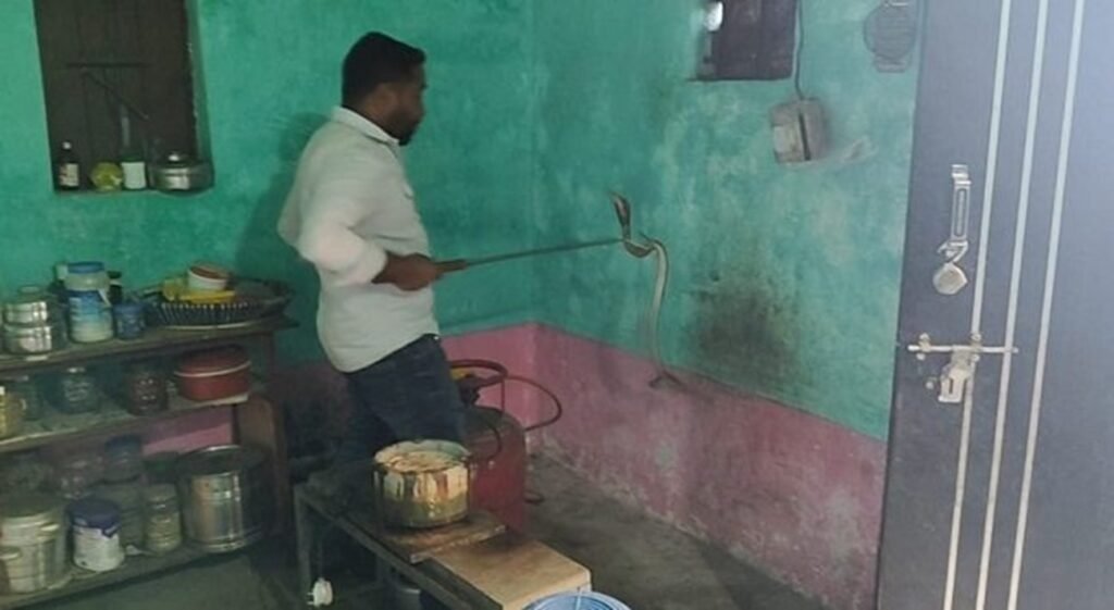 किचन में सिलेंडर के पीछे बैठा था नाग, फुंकार सुनकर भागी महिला… 5 फीट लंबे नाग का रेस्क्यू