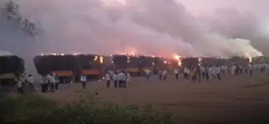 कर्नाटक में गन्ना किसानों का आंदोलन हिंसक हुआ, 100 से ज्यादा ट्रैक्टर में आग लगाई