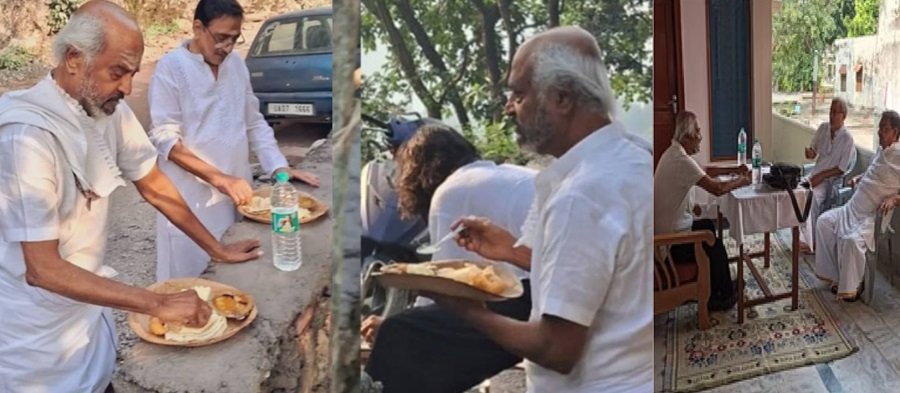 सड़क किनारे पत्तल में खाना खाते दिखे सुपरस्टार रजनीकांत, फिल्मों से ब्रेक लेकर आध्यात्मिक यात्रा पर निकले