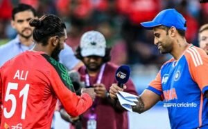 एशिया कप में पाकिस्तान के खिलाड़ियों से भारतीय टीम के खिलाड़ियों ने हाथ नहीं मिलाया था. जिसेक बाद ये कयास लग रहे थे कि क्या बांग्लादेश के खिलाड़ियों से भी भारतीय टीम के कप्तान और खिलाड़ी हाथ नहीं मिलाएंगे. उसको लेकर अब नई तस्वीर सामने आई है. भारत ने बांग्लादेश के खिलाफ मैच को 41 रन से जीत लिया था. भारत एशिया कप के फाइनल में पहुंचने वाली पहली टीम है. इस मैच के दौरान, सोशल मीडिया यूजर्स के एक वर्ग, ने खासकर पाकिस्तान की ओर से एक बात चलाई गई कि टॉस के समय सूर्या ने बांग्लादेश के कार्यवाहक कप्तान जैकर अली से हाथ नहीं मिलाया. कई तस्वीर पाकिस्तानियों की ओर से वायरल की गई थी. पाकिस्तानी फैन्स की ओर से कि गए इन दावों की हवा निकल गए. ये दावें झूठे निकले, जैसा कि मैच के बाद की तस्वीरों से स्पष्ट है, जिसमें दोनों टीमों के खिलाड़ी हाथ मिलाते हुए देखे जा सकते हैं भारतीय क्रिकेट टीम ने एशिया कप 2025 के सुपर-4 के अपने दूसरे मैच में बांग्लादेश को 41 रन से हरा दिया. भारतीय टीम की जीत के हीरो रहे बाएं हाथ के सलामी बल्लेबाज अभिषेक शर्मा रहे. शर्मा ने 37 गेंद पर 75 रन की पारी खेली थी. उन्हें प्लेयर ऑफ द मैच चुना गया.