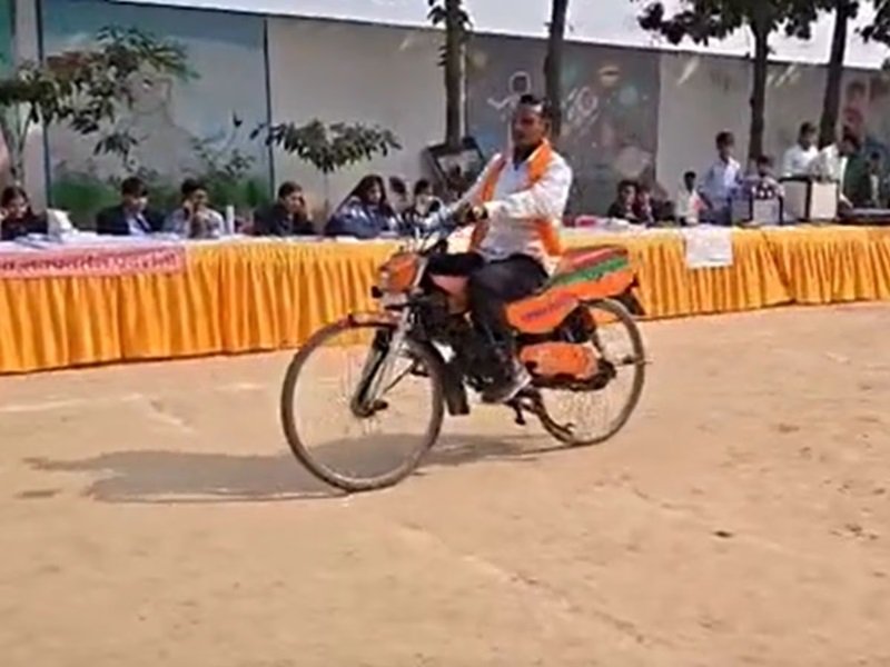 अब बाइक दौड़ाने के लिए पेट्रोल की चिंता नहीं पड़ेगी. बार बार बाइक का फ्यूल मीटर नहीं देखना होगा. यूपी के मीरजापुर के एक शख्स ने कमाल कर दिया है. इस शख्स ने ऐसी बाइक तैयार की है जो एक लीटर पेट्रोल में 150 किलोमीटर तक जा सकेगी. लंबे सफर में पेट्रोल के बारे में नहीं सोचना पड़ेगा. मीरजापुर के अदलहाट स्थित विद्या संस्कार पब्लिक स्कूल कौड़ियांकला में आयोजित जनपद स्तरीय नवप्रवर्तन प्रदर्शनी में जय प्रकाश बिंद की इलेक्ट्रिक डोर मेट बाइक को पहला स्थान मिला है. यह बाइक 1 लीटर पेट्रोल से 150 किलोमीटर का सफर तय करती है. इसे पेटेंट के लिए भी चुना गया हैं. इस अनोखी बाइक को साइकिल की मरम्मत और पंचर बनाने वाले छानबे ब्लॉक के रायपुर सौनहा निवासी 50 वर्षीय लक्षनधारी बिंद ने तैयार किया है. लक्षनधारी बिंद ने बताया कि इस बाइक को बनाने में करीब 40 हजार रुपये खर्च हुए हैं. इस मोटर साइकिल का नाम भी उन्होंने लक्षनधारी बाइक रखा है. लक्षनधारी विजयपुर बाजार में दूसरों की बाइक ठीक करते हैं. पांचवीं तक की पढ़ाई करने वाले लक्षनधारी बिंद ने कुछ समय पहले ही बाइक बनानी शुरू की. परिवार का पालन पोषण करने के लिए वह साइकिल की मरम्मत और पंचर बना