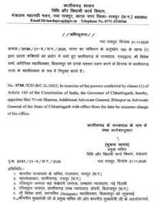 विवेक शर्मा बने छत्तीसगढ़ के एडवोकेट जनरल, सबसे कम उम्र के नए महाधिवक्ता