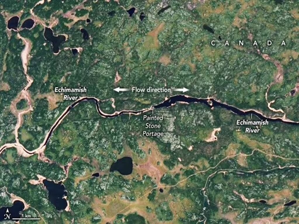 स्थानीय भाषा में इसका नाम ही ‘पानी जो दोनों तरफ बहता है’ रखा गया है. यह नदी कनाडा के जंगलों में बहती है और यहां से पानी एक तरफ हडसन बे की ओर जाता है, तो दूसरी तरफ अलग दिशा में. वैज्ञानिक इसे ‘रिवर बिफुरकेशन’ कहते हैं, जहां एक नदी दो या ज्यादा शाखाओं में बंट जाती है. लेकिन इचिमामिश का मामला अलग है– यहां ढाल इतनी कम है (0.009 प्रतिशत से भी कम) कि पानी दोनों दिशाओं में कैसे बहता है, ये समझना मुश्किल है. NASA ने भी इस नदी की सैटेलाइट तस्वीरें ली हैं, जो इसकी अनोखी प्रकृति को दर्शाती है.